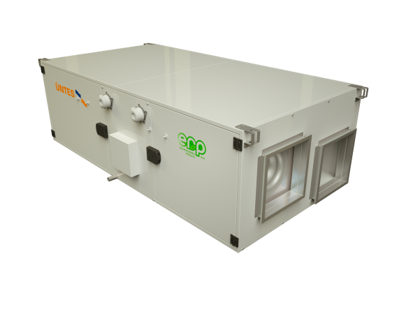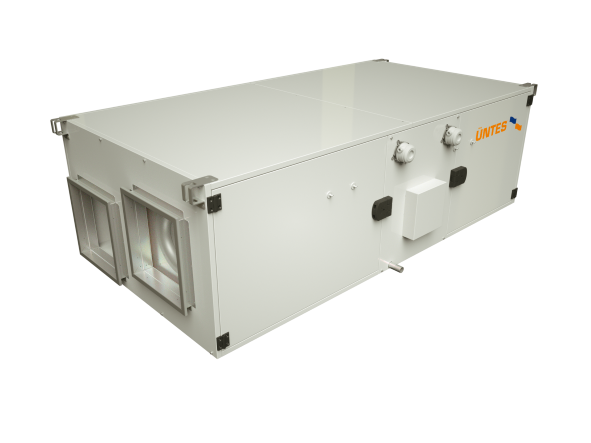 UTFP Thermo Fresh series is a heat recovery unit encasing an aluminum plate cross-flow heat recovery system. The unit comes with six staged airflow rate control powered by highly efficient coupled plug fans or centrifugal fans with a low sound level. The series is available in nine different sizes up to 5500 m3/h airflow rate and delivers high indoor air quality resulting from ISO erDM10 50% (M5) up to ISO ePM1 80% (F9) filters. The control unit is user friendly and has remote access through a mobile app using Wi-Fi technology